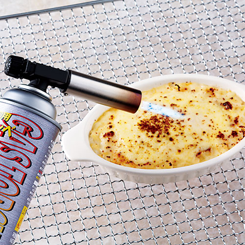 素材を真上から加熱すると、煽り火や熱風などで炎が不安定になります。また本体が温度上昇しますのでご注意ください。使用後はボンベを外し、ほこりが入らないように袋又は箱に入れて保管して下さい。火口付近はすぐ高温になりますので絶対に手を触れないで下さい。子供の手の届かない場所へ保管して下さい。