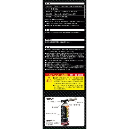 ●適用ボンベ:SK11ガストーチ用ボンベ(HG-200)。