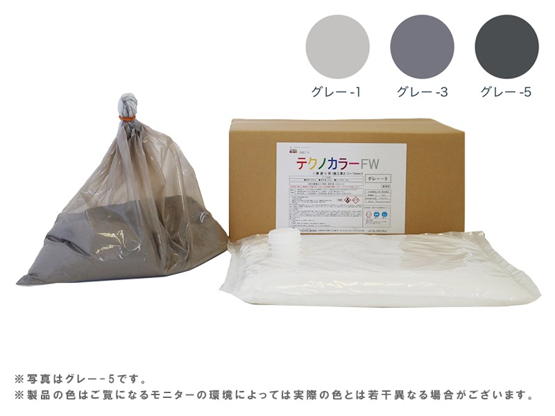 - ※テクノカラーFWはセメントが主成分の製品ですので、使用方法や環境(天候・気候・湿度など)によって多少白華現象(エフロエッセンス)が生じることがあります。