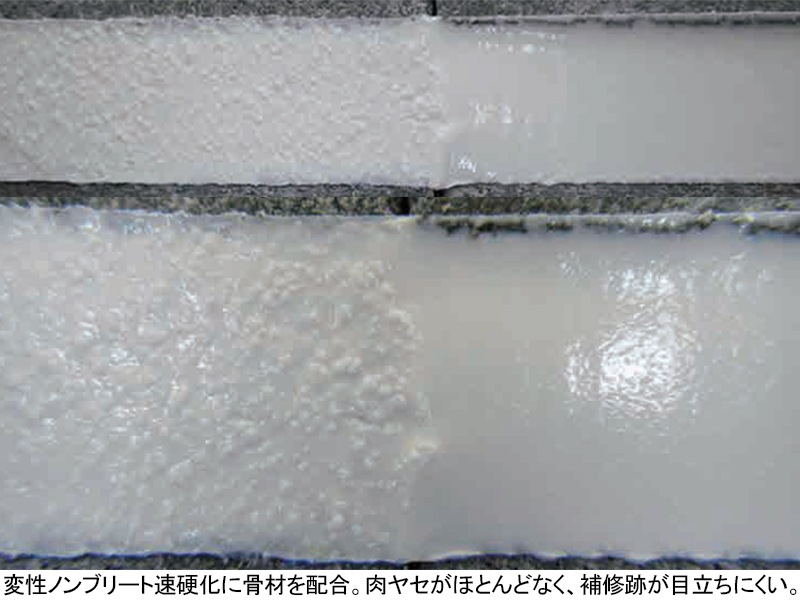 ●Vカット、Uカット後の補修シール(肉ヤセがほとんどない)●部材との肌合せ用に最適な下地シール(骨材入り配合)