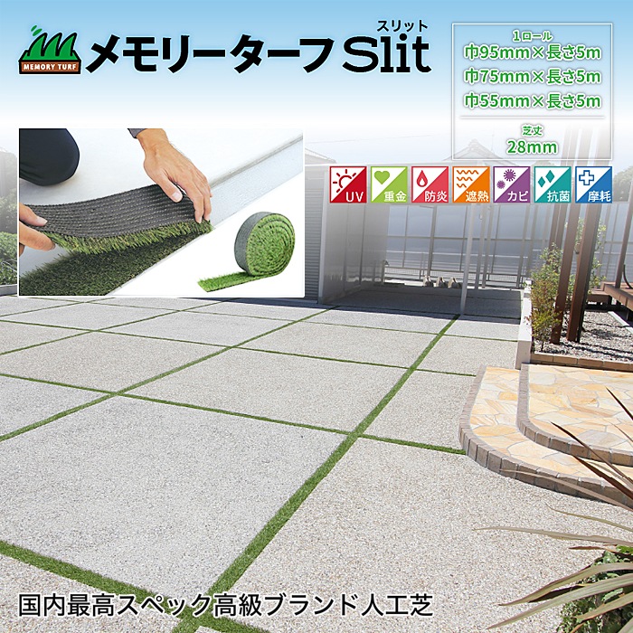 - メモリーターフスリット 幅55/幅75/幅95/×長さ5m/ロール 芝丈28mm