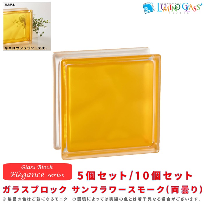 - 【メーカー在庫品】ガラスブロック エレガンスシリーズ サンフラワースモーク(両曇り) 5個セット/10個セット
