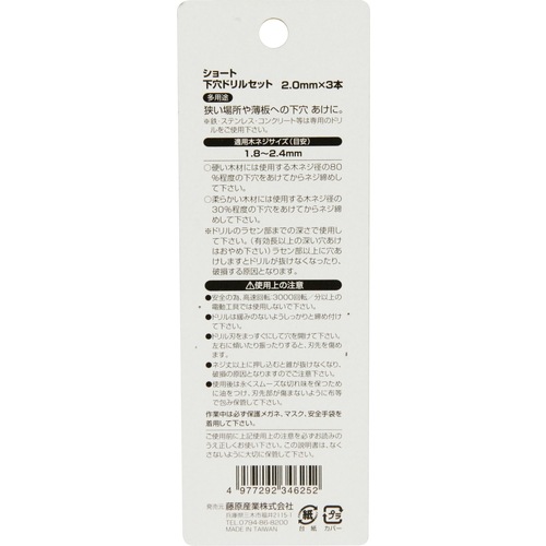 - 藤原産業 SK11 ショート下穴ドリルセット 2.0MM 3PCS