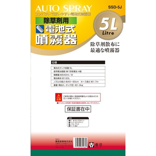 - 藤原産業 セフティ-3 除草剤用電池式噴霧器 5L SSD-5J