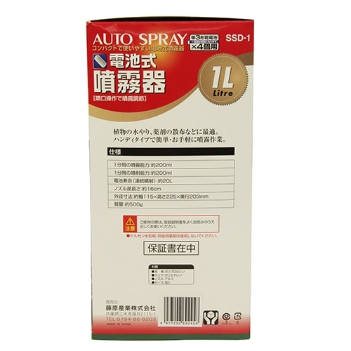 - 藤原産業 セフティ-3 電池式噴霧器 1L SSD-1