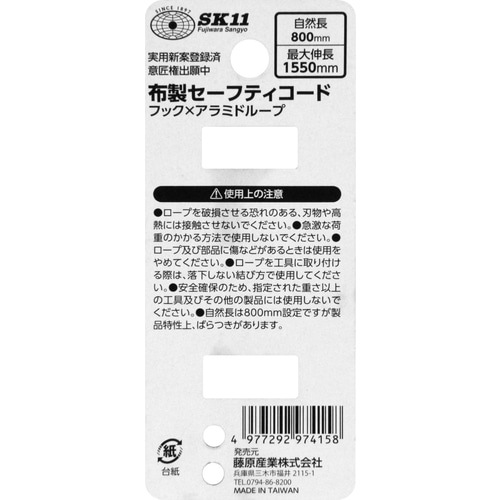 - 藤原産業 SK11 布製安全コード1KGAループ SNSC-1-AR-GRY