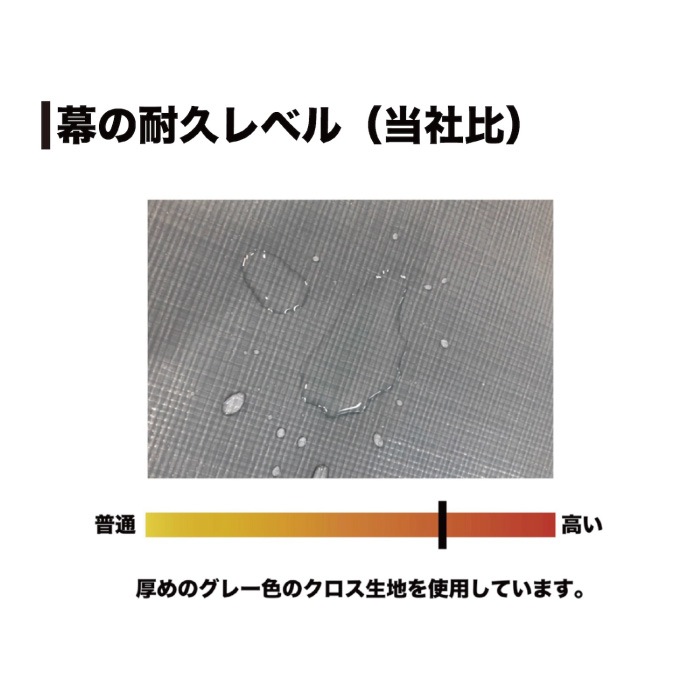 - パイプは国内製造の亜鉛メッキ製、高耐久シートで安心して使えます。