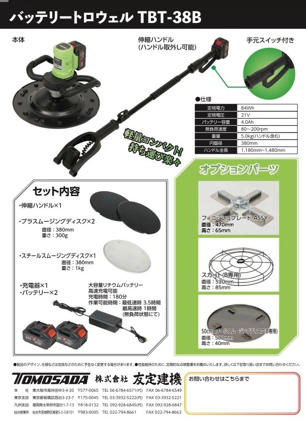 - 友定建機 バッテリートロウェル 手元スイッチ仕様延長ハンドル付き TBT-38B