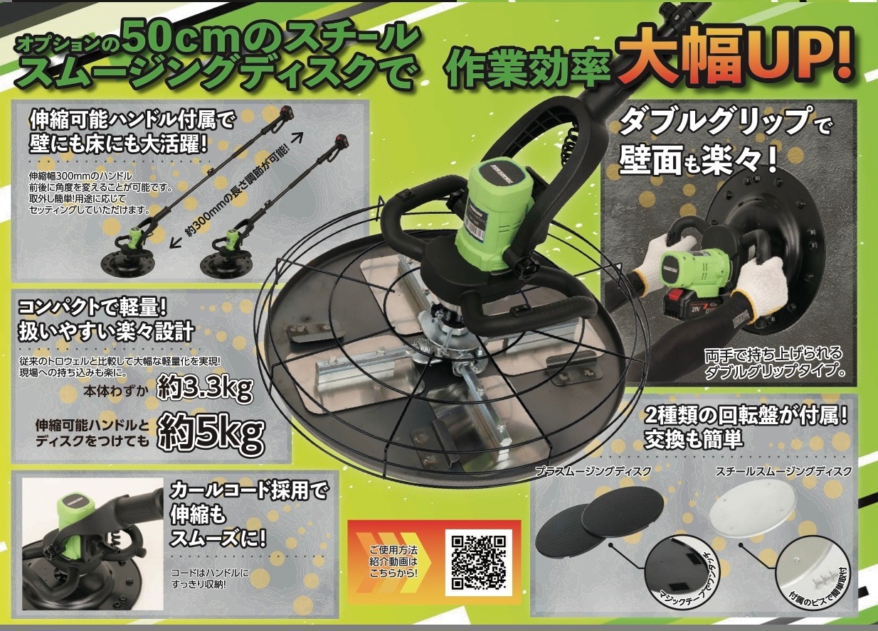 ・誰でも一人で積み下ろせる超軽量円盤掛けトロウェル。